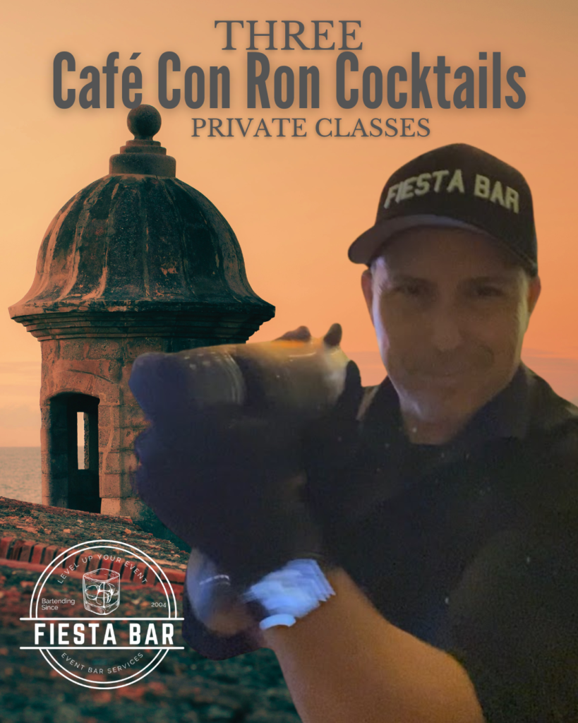 🍸 Book a Private Cocktail Class with Fiesta Bar and learn how to craft delicious drinks like the Espresso Martini, Old Fashioned, Mojitos, Prohibition-era cocktails, and of course, our signature Café con Ron — inspired by Bad Bunny’s latest hit.